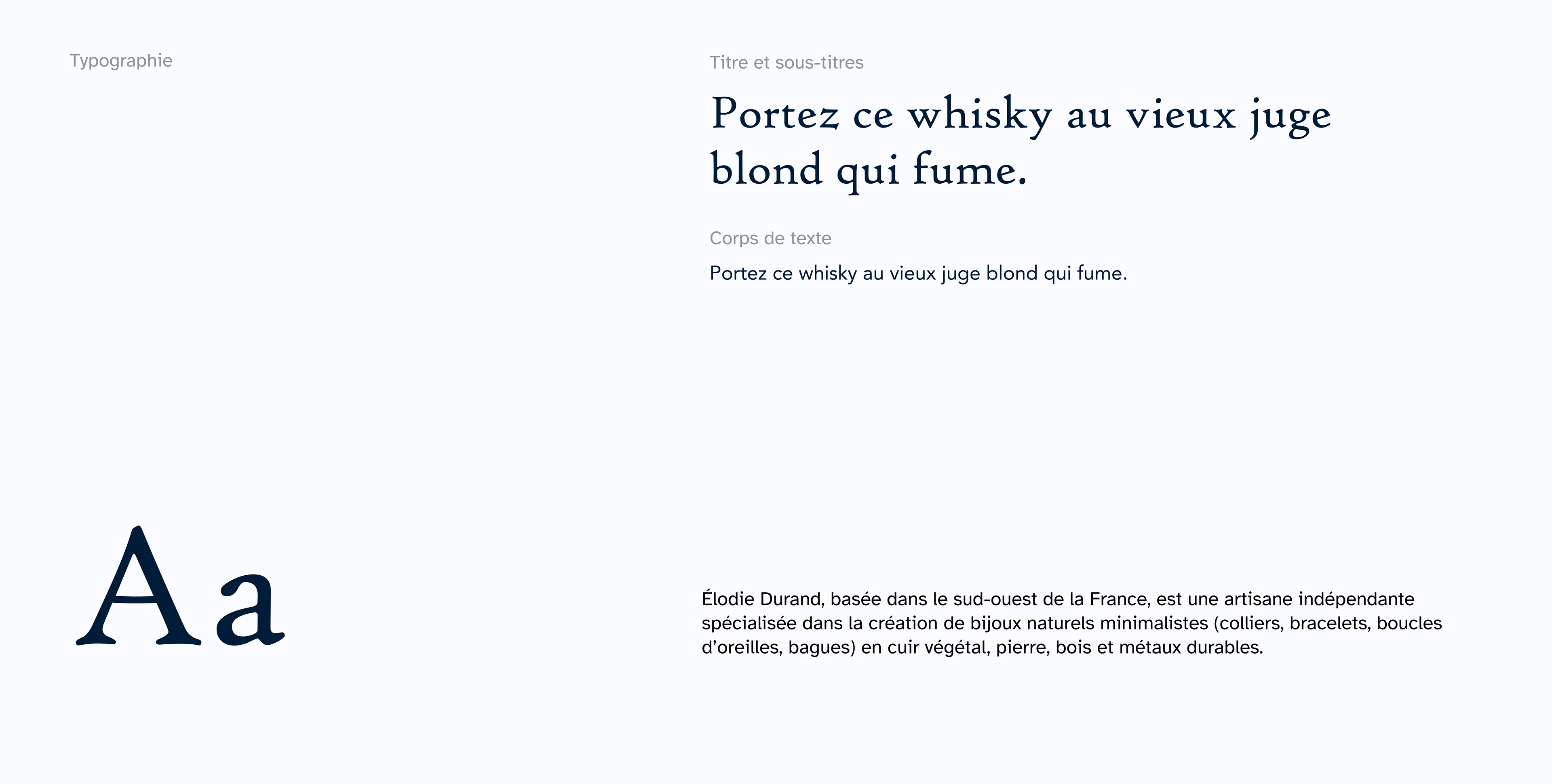 Élodie Durand, basée dans le sud-ouest de la France, est une artisane indépendante spécialisée dans la création de bijoux naturels minimalistes (colliers, bracelets, boucles d’oreilles, bagues) en cuir végétal, pierre, bois et métaux durables.