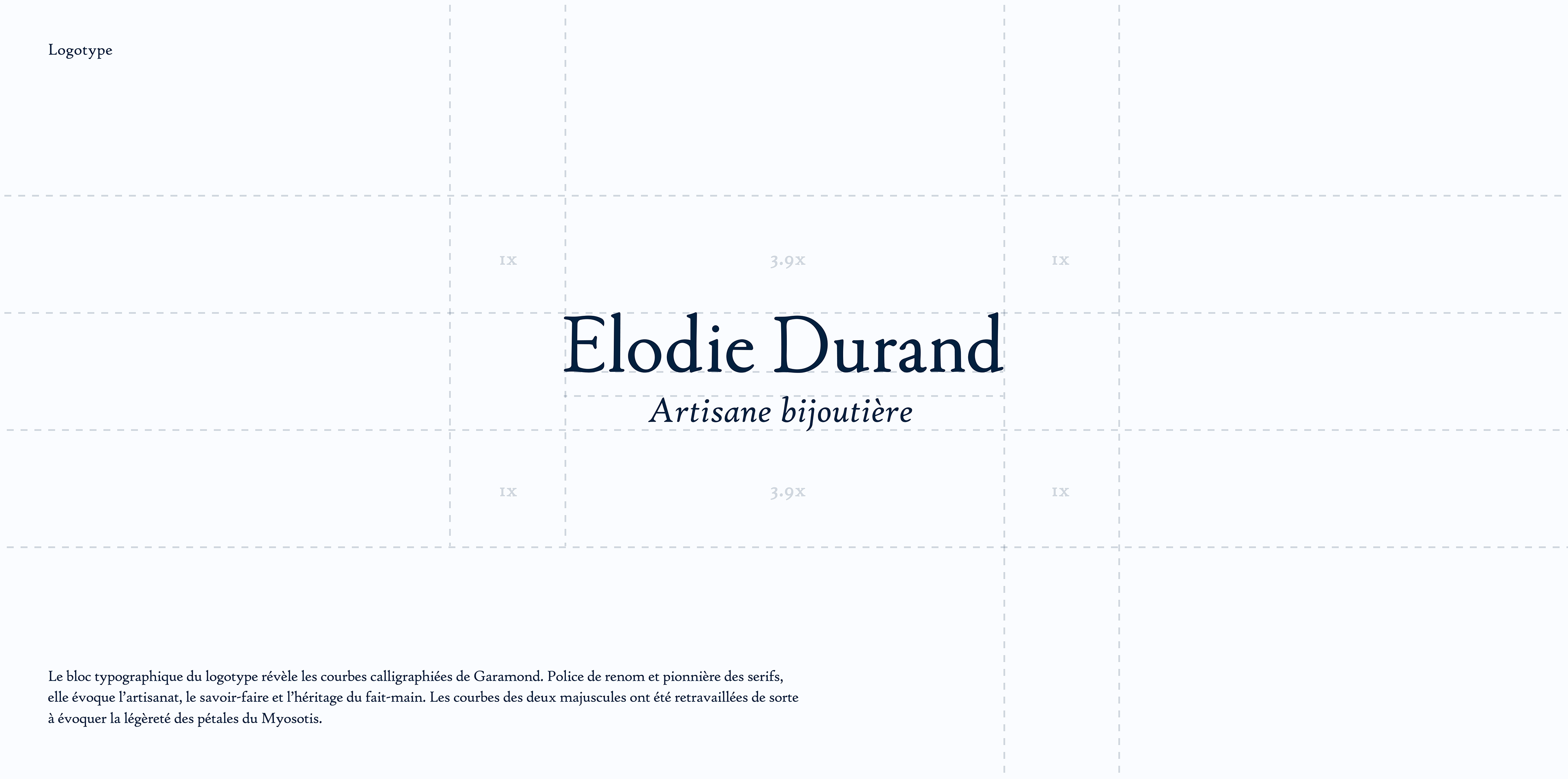 L’objectif de ce brief (fictif) était de concevoir une identité visuelle capable de traduire le savoir-faire, la singularité, mais aussi la dimension mémorielle des créations d’Élodie Durand. Cette dimension se cristallise autour d’un symbole floral universellement reconnu : la fleur de Myosotis (ou Forget-me-not). Un symbole qui devient le point d’ancrage d’une direction artistique contemplative et suspendue dans le temps.